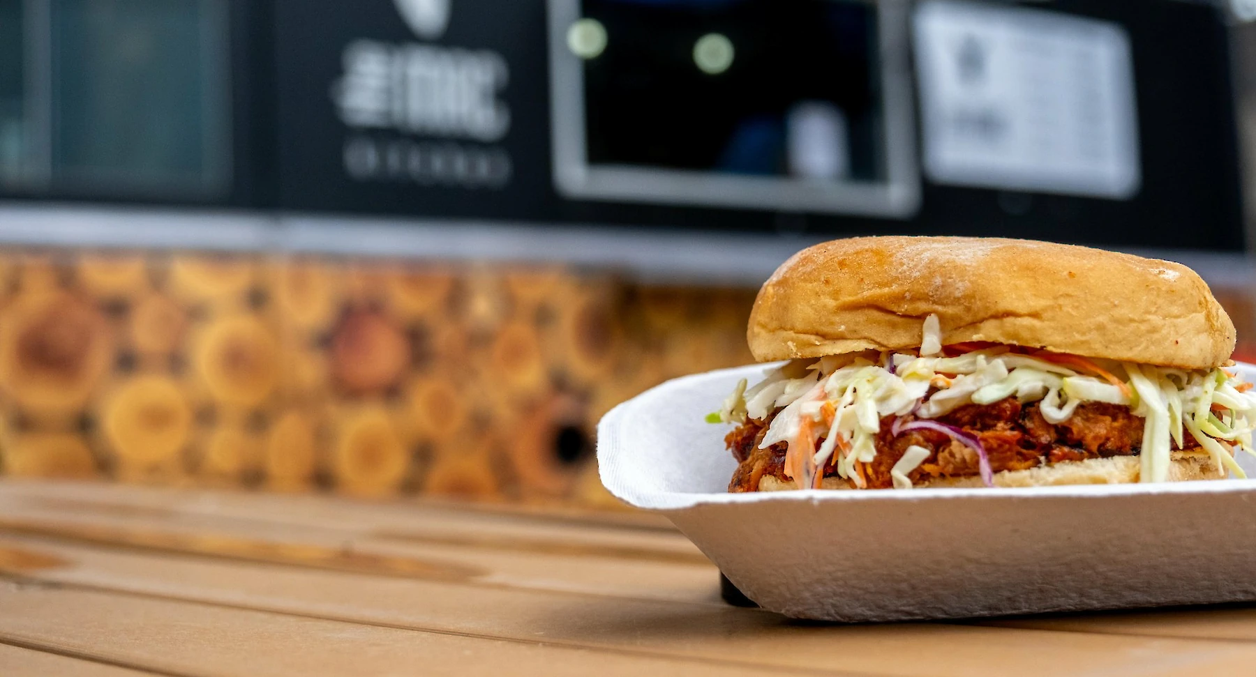 16 hour pulled pork, Texas whiskey bbq sauce, house-made slaw, toasted potato roll