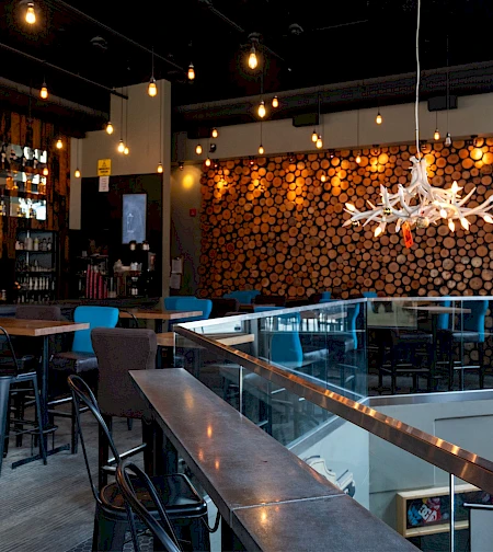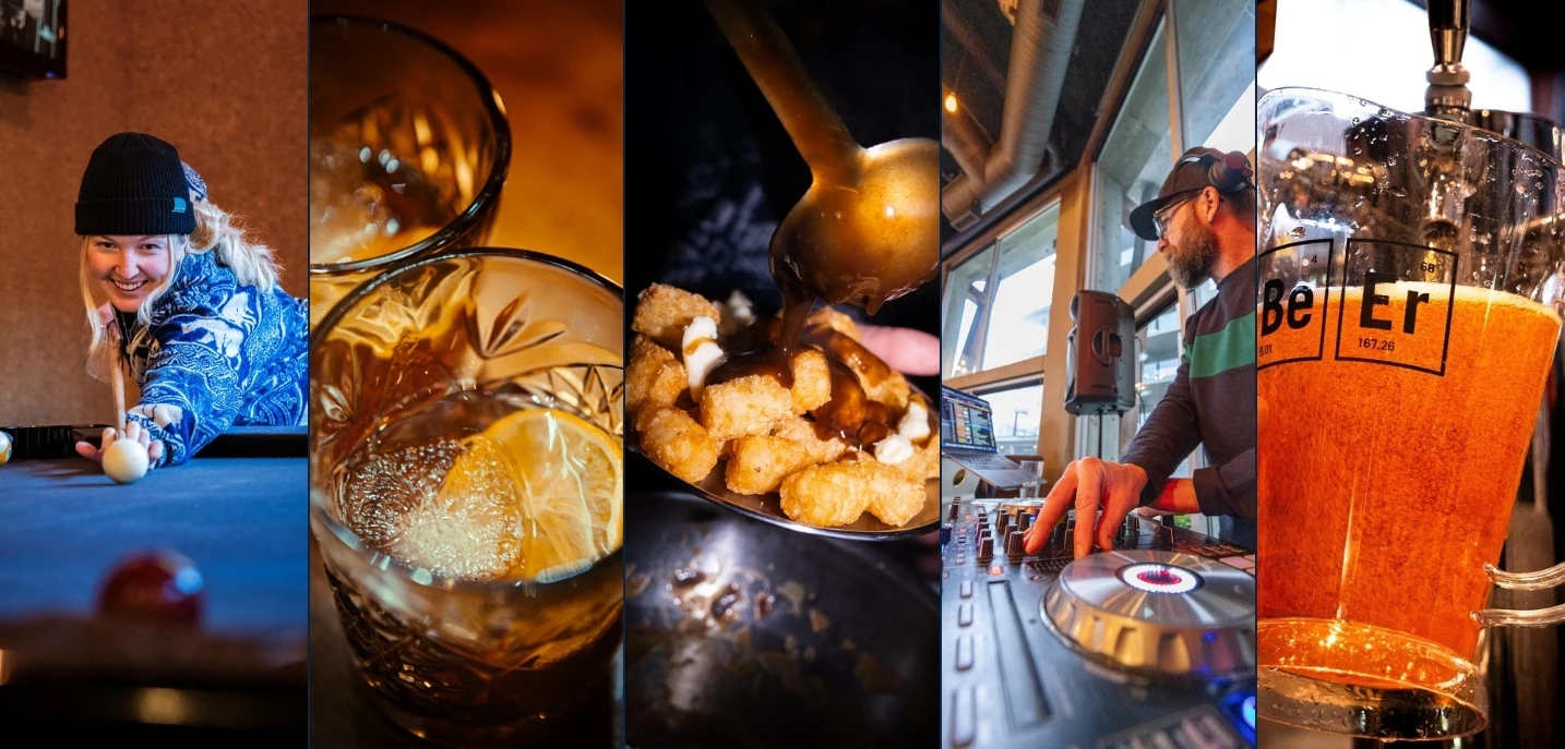 Located steps from the Gondola, this split-level restaurant offers a cozy, classy vibe with warm wood accents, good tunes, a pool table, and games. It's the perfect après spot for fun and relaxation.