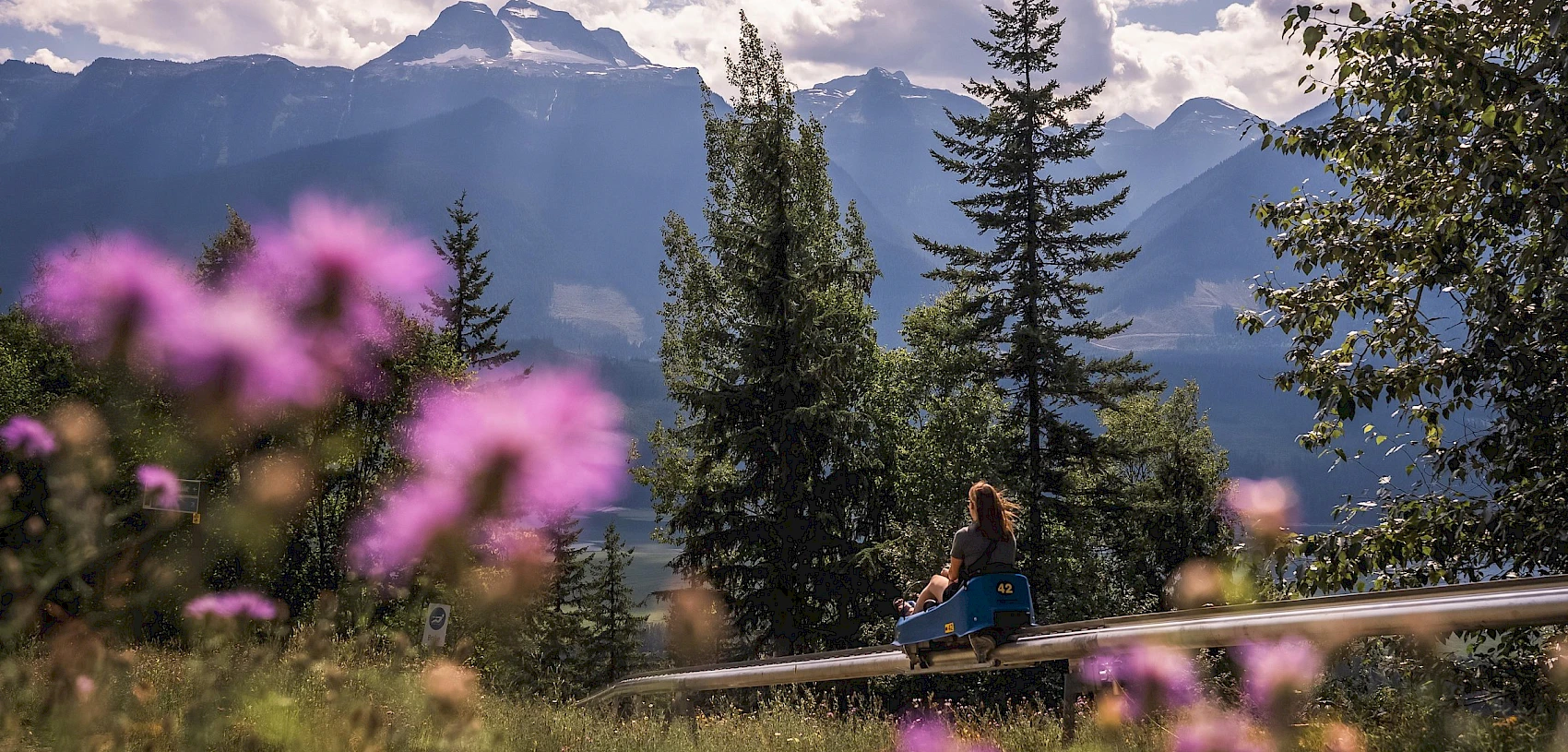 Turn up the heat this summer and take a ride on Revelstoke's #1 summer attraction! Our two Mountain Coaster Tracks will take you for an exhilarating ride of twists and turns across ski runs, between glades and through a tunnel. You have the opportunity to travel up to 42 kilometres per hour but the power lies in your hands. This family-friendly ride allows you to control your own speed, making it ideal for people of all ages.