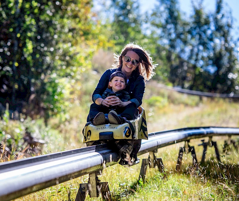 Turn up the heat this summer and take a ride on Revelstoke's #1 summer attraction! Our two Mountain Coaster Tracks will take you for an exhilarating ride of twists and turns across ski runs, between glades and through a tunnel. You have the opportunity to travel up to 42 kilometres per hour but the power lies in your hands. This family-friendly ride allows you to control your own speed, making it ideal for people of all ages.