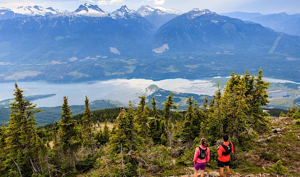 Sweeping panoramas of the Monashees, Selkirks, and Columbia River Valley.