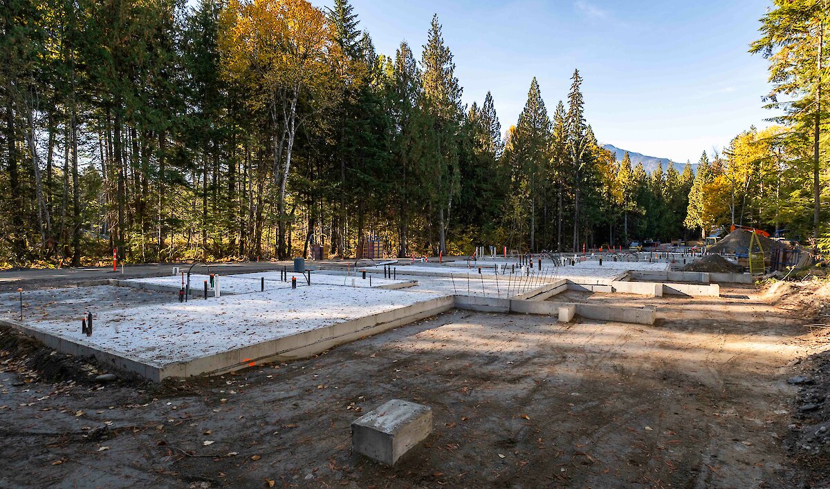 Construction is well underway on the first townhomes in the Benchlands neighbourhood. The road is paved, foundations for the first two buildings are complete, and walls will be going up soon – a major step toward bringing this new residential area to life.